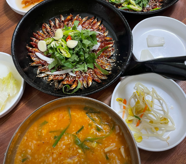 A4. 금강에서 잡은 작은 생선을 원형으로 둘러 튀겨내는 전통 요리로, 겉은 바삭하고 속은 부드럽습니다. 아이들도 잘 먹는 메뉴입니다.