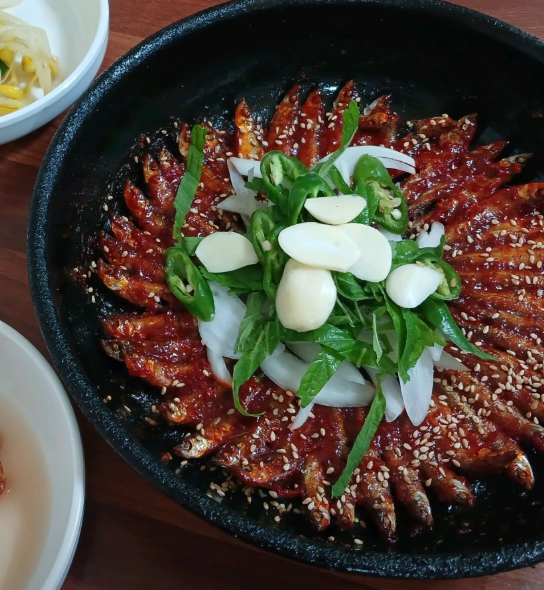 도리뱅뱅은 영동과 금산 일대에서 즐겨 먹는 전통 민물 생선요리로, 빙어·피라미 같은 작은 생선을 동그랗게 둘러 붙여 바삭하게 튀긴 뒤 매콤달콤한 양념을 발라 구워낸 음식입니다.
