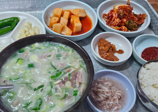 이 집의 돼지국밥은 국물의 진함과 깔끔함을 동시에 잡은 맛으로 유명합니다.