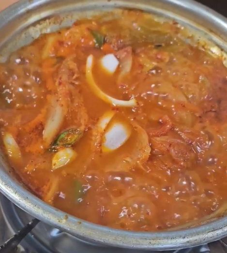 묵은지 특유의 깊고 시큼한 맛이 국물에 배어 있어 밥 한 공기 뚝딱!