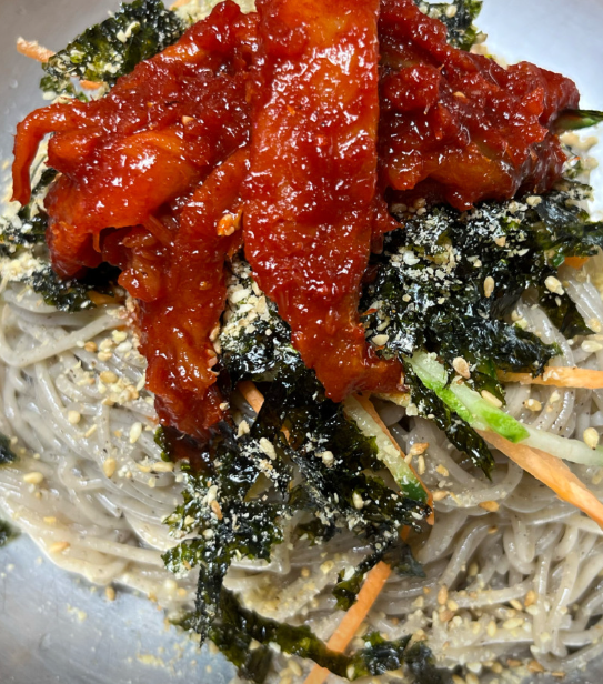메밀 향이 살아 있는 면발, 새콤하고 시원한 육수가 더해져 완벽한 조화를 이뤄요.