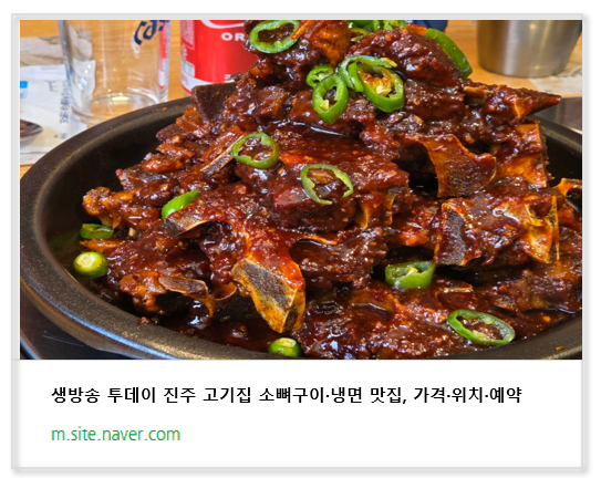 ▶생방송 투데이 진주 고기집 소뼈구이·냉면 가격·위치·예약◀