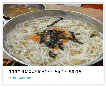 ▶생생정보 예산 천변시장 국수거리 식당 위치·메뉴·가격◀