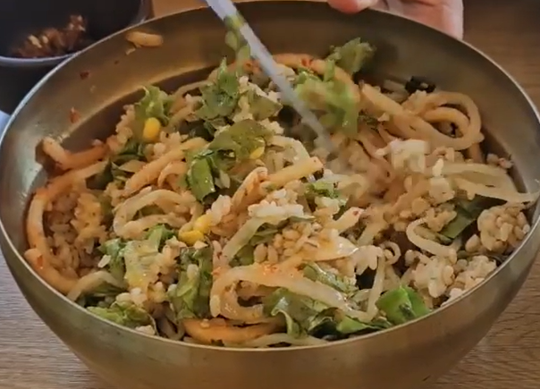 보리밥 위에 나물 올리고, 쓱쓱 비벼 한 입—“아, 이게 진짜 밥이지” 소리가 절로 나왔어요.