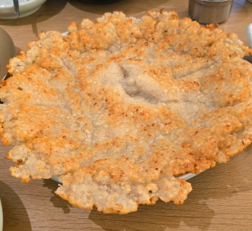 겉은 바삭, 속은 촉촉. 두께도 도톰하고 고소함이 미쳤어요. 전 하나로도 한 끼가 될 만큼 든든해요. - 청국장 보리밥: