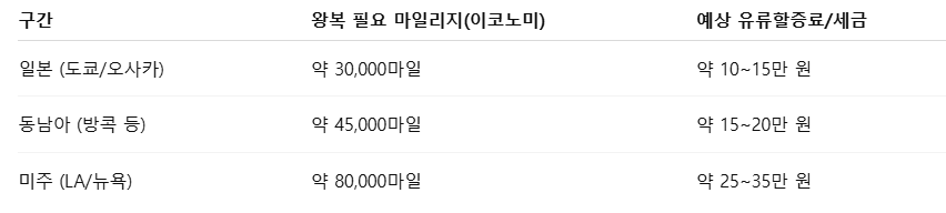 👉 네, 제주 노선 등은 1만 마일 내외로 가능합니다.