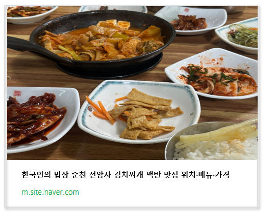 ▶김치찌개 백반 맛집 위치·메뉴·가격◀