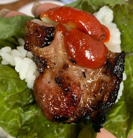 300g 넉넉한 양의 돼지고기는 겉은 살짝 탄 듯 고소하고,