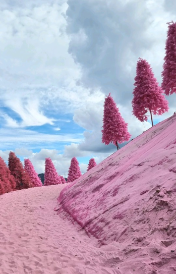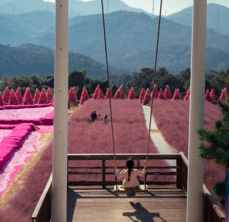 • 핑크 트리 배경 그네