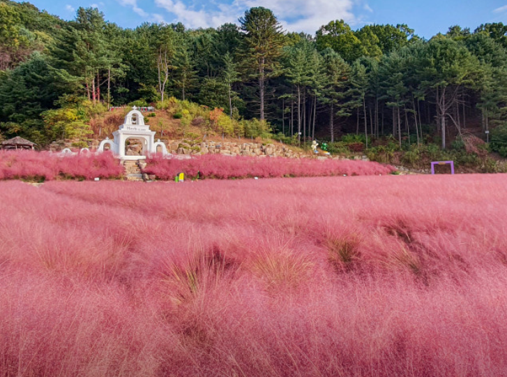 핑크빛으로 물든 자연 속 정원, 포천 허브아일랜드