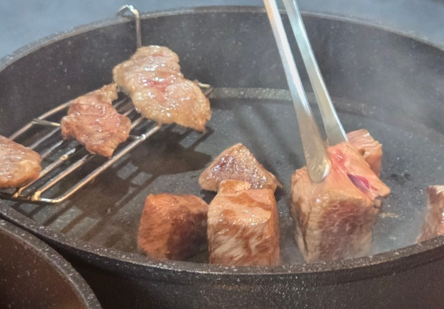불판 위에서 지글지글 익어가는 한우는 부드러우면서도 육즙이