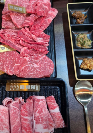 이 집의 고기는 지방 함량이 균형 잡혀 있어 부담 없이 즐기기에 좋습니다.