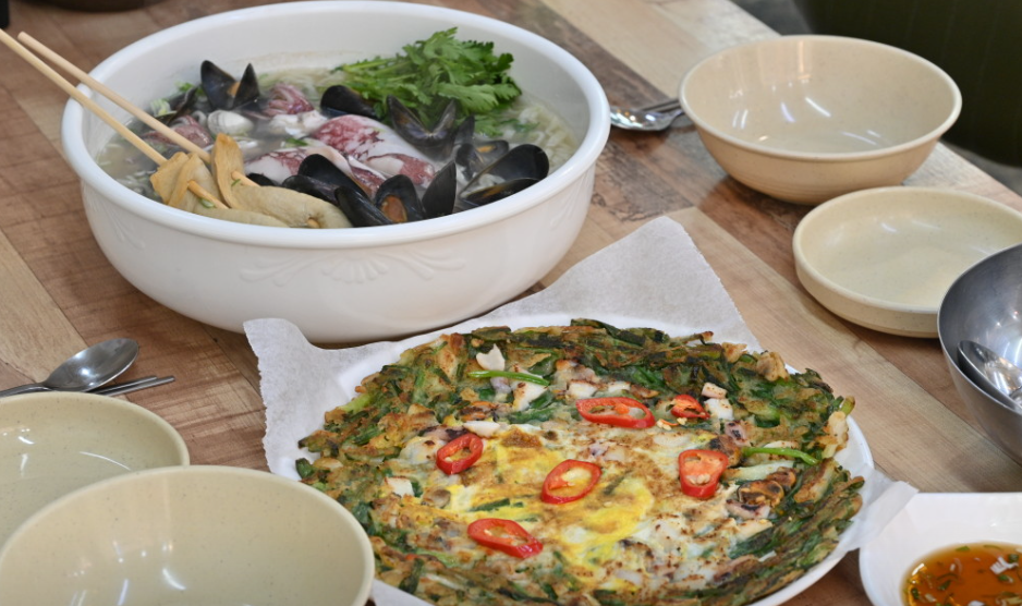 1️⃣ 시그니처 메뉴: 통 한치 올라간 칼국수, 감자전·해물파전까지 완벽 조합