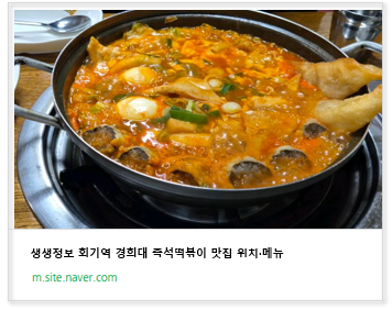 ▶생생정보 회기역 경희대 즉석떡볶이 맛집 위치·메뉴◀