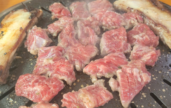 여긴 갈비가 10일 이상 숙성된 국내산 한우예요.