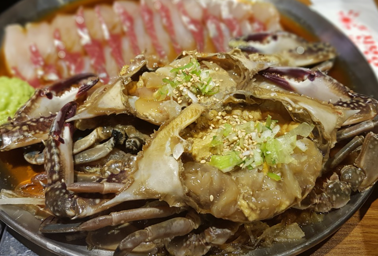 꽃게 내장과 살을 아낌없이 얹은 초밥 한 점에 간장게장, 양념게장, 그리고 깊은 국물 맛이 일품인 꽃게탕까지!