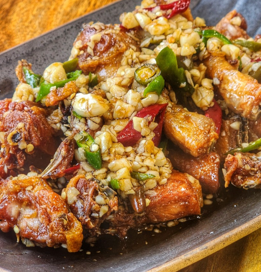 마늘을 듬뿍 넣은 닭요리로 입소문이 자자한 맛집입니다.