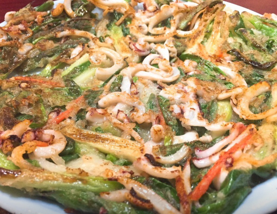 A. 꼭 드셔보세요. 오징어가 아낌없이 들어가고 바삭해서 수제비랑 궁합이 최고입니다.