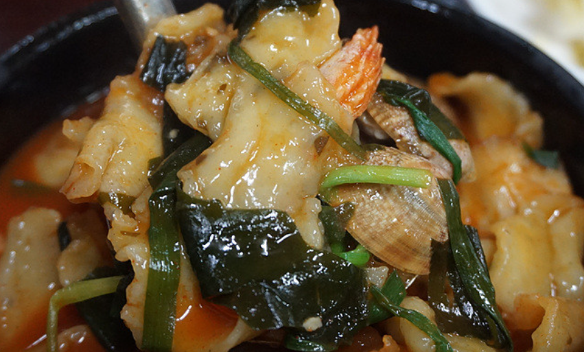 오징어와 각종 해물이 푸짐하게 들어가 감칠맛이 폭발합니다.