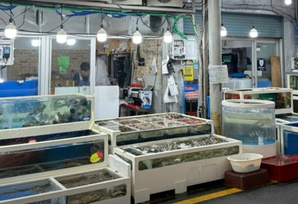 매장 안 수조엔 꽃게, 가숭어, 각종 제철 생선들이 가득했고요,