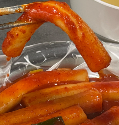 👉 100% 밀떡입니다. 쫀득함과 매운 양념의 궁합이 좋아요.