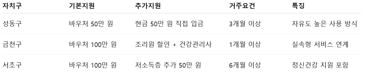 각 구청의 특성을 이해하고, 내 상황에 맞는 혜택을 제대로 챙기시길 바라요!